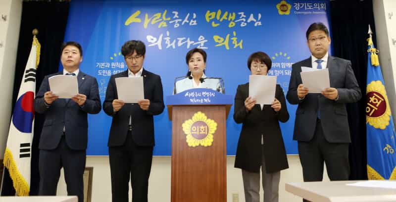 경기도의회 더불어민주당은 국민들의 명령을 받아 들여 국회는 소모적인 정쟁을 중지하고 ‘지방자치 전부개정안’을 즉각 처리할 것을 다시 한 번 강력하게 촉구한다. 끝.