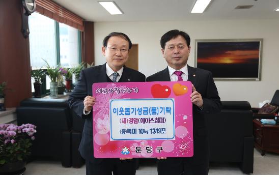 재단법인 에이스경암(이사장 안유수/ (주)에이스침대 회장)에서는 2월 4일 분당구청(구청장 박석홍)을 방문해 설을 맞아 외롭게 지내고 있는 독거노인과 소년소녀가정에 전달해 달라며 10㎏백미 1,319포(31,000천원상당)를 기탁하였다.