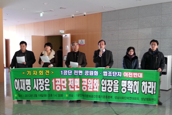 끝으로, 현재 법원, 검찰 그리고 성남시의 비공식적인 논란의 의혹만을 증폭시키는 행정을 중단하고, 지역주민과 시민사회가 함께 참여하는 기구를 통해 투명하고 공개적으로 진행해야 할 것을 촉구했다.