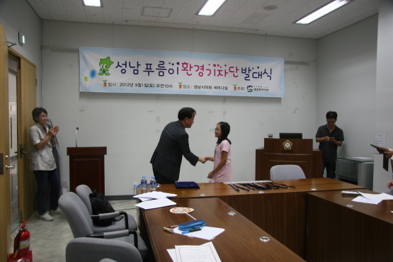 마지막 순서로 성남푸름이환경기자단 기자 소개와 기자증 증정으로 발대식은 막을 내렸다.