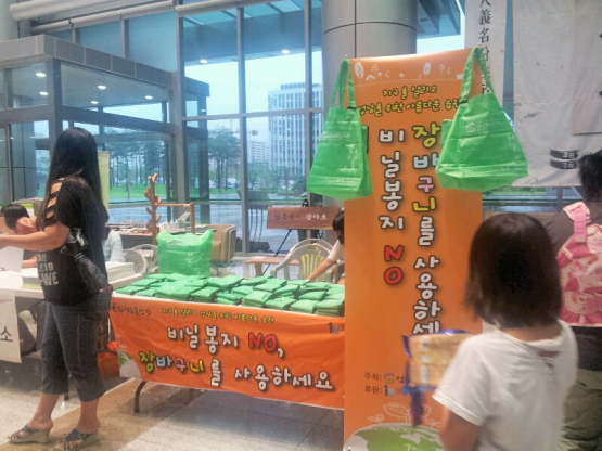 성남환경운동연합(공동의장 주혜 ․ 백찬홍)은 지난 7월 9일부터 30일까지 본시가지 5군데 재래시장인 상대원 시장, 모란시장, 성호시장, 중앙시장, 은행시장 6차례 걸쳐 ‘비닐봉투 사용자제와 장바구니 사용 활성화를 위한 캠페인’과 ‘장바구니 사용에 대한 시민설문 조사’를 함께 진행했다.