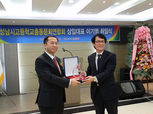 김상배, 원병옥 전 회장들에게 성남시고등학교총동문회 연합회가 결실을 맺기까지 수고해준 노고의 보답으로 이기영 상임대표가 감사패를 전달했으며, 김상배 전 회장은 이기영 상임대표에게 추대패를 전달했다.