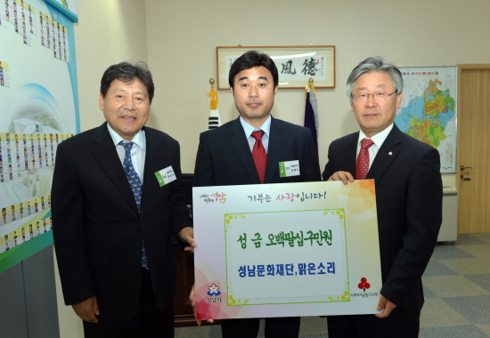 같은 날 오후 2시 성남문화재단(대표 안인기)과 맑은소리(대표 조경숙)도 성금 589만원을 냈다.