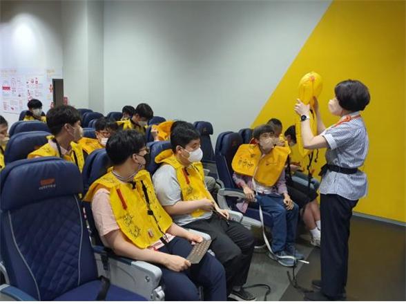 < 성남행복누리센터는 2023년 제주도 여름 캠프를 앞두고, 사전 기내체험을 하고 있다.>