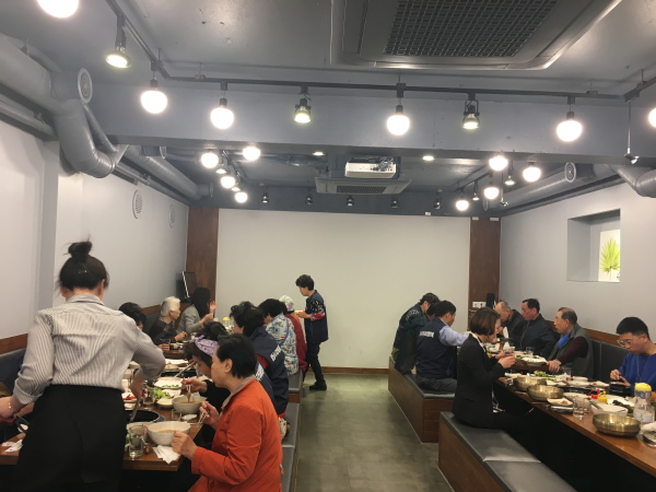 성남시 분당구 운중동 행정복지센터(동장 김재영)에서는 17일 관내 음식점 운중농원(대표 김성민)의 후원으로 생활이 어려운 어르신들 대상으로 점심식사를 대접하였다.