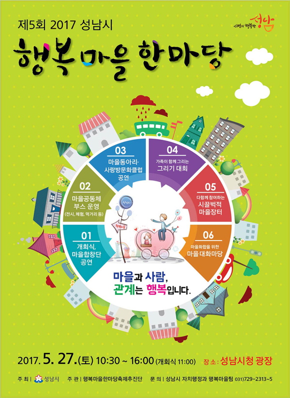 성남지역 60곳 마을공동체의 모든 것을 보여주는 축제가 오는 5월 27일(토) 성남시청에서 열린다.