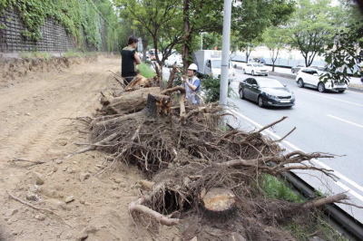 분당수서도로 지상공원화 공사, '20년 넘은 수목 벌목으로 훼손'