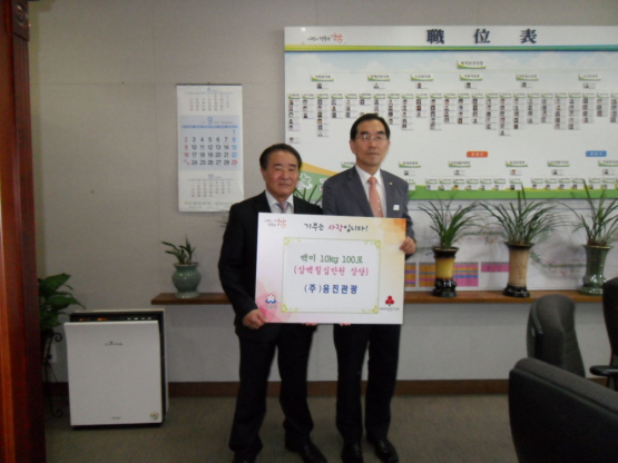 국내외 전세버스운송사업체인 ㈜웅진관광은 지난 2009년도부터 설과 추석 명절 때마다 불우이웃을 돕기 위한 ‘사랑의 쌀’을 성남시에 기탁해오고 있다.