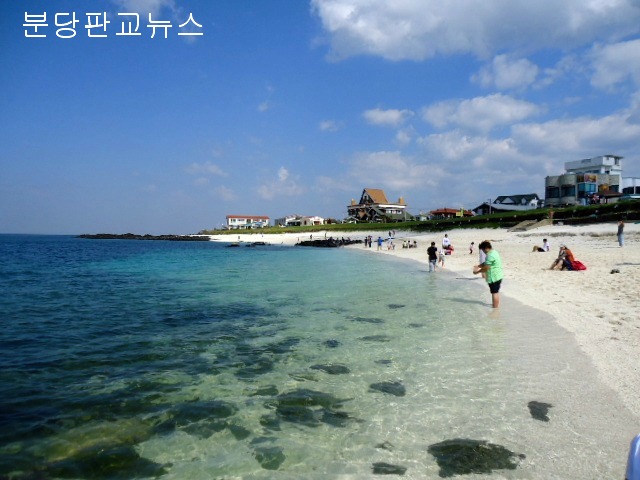▲우도 서빈백사의 옥색바다와 산호초해변