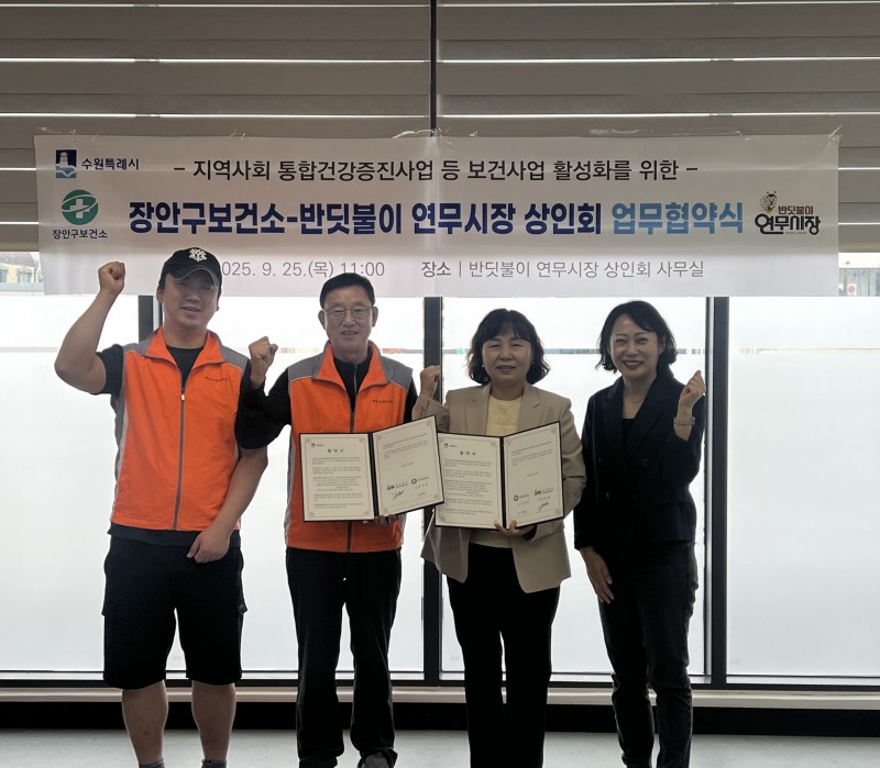 수원시 장안구보건소는 25일 반딧불이 연무시장 상인회와 ‘지역사회 통합건강증진사업 등 보건사업 활성화’를 위한 업무협약을 체결했다.