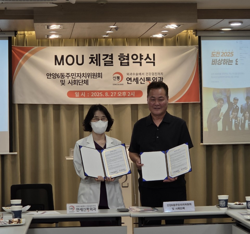 연세신통외과 별관 5층에서 진행된 협약에 따라 안양6동의 지역주민은 병원진료 시 진료 편익과 진료비 할인 혜택(20% 감면) 등 의료서비스를 누리게 되고 필요시 건강과 의료에 관한 유익한 정보를 제공받는다.