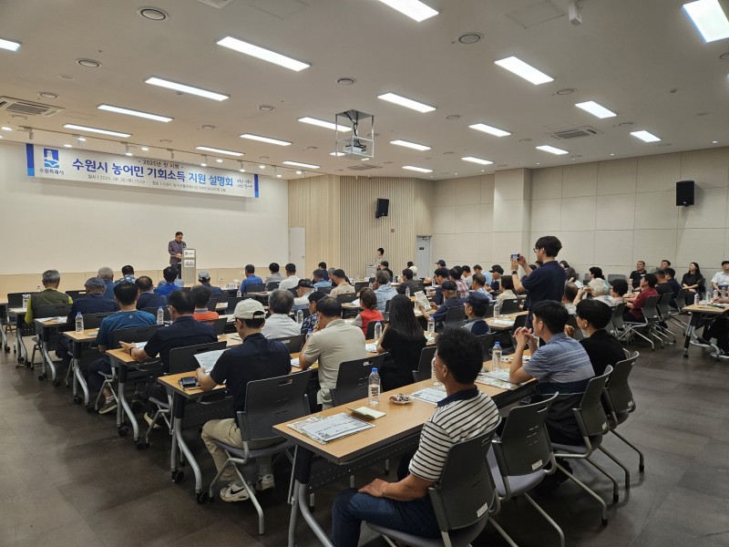 수원시(시장 이재준)는 26일 수원시 농수산물도매시장 대회의실에서 ‘수원시 농어민 기회소득 지원 설명회’를 열었다.