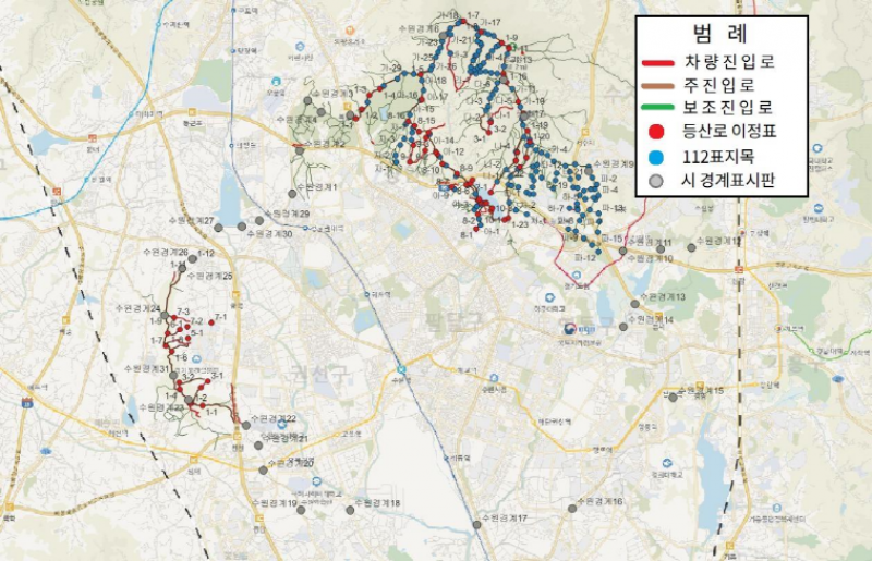 수원시, 광교산·칠보산 안내시설물 262개 위치정보 담은 전자지도 구축…재난 대응력 높인다
