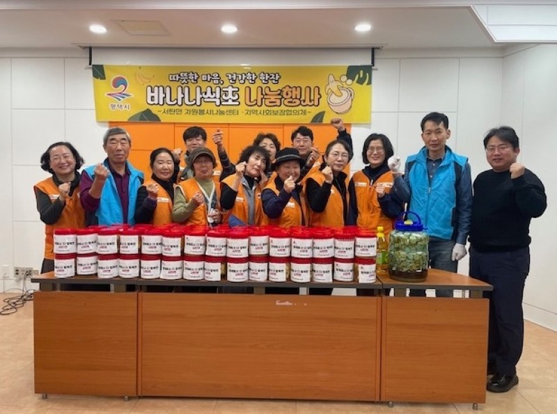 평택시 서탄면 자원봉사나눔센터(센터장 김춘성)와 지역사회보장협의체(민간위원장 홍선각)는 지난 25일 ‘바나나 식초 만들기 및 나눔 행사’를 개최하여 지역사회에 따뜻한 나눔을 실천했다.