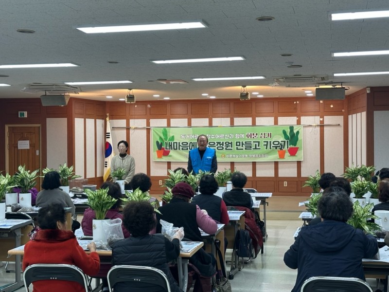 위원회에서 준비한 화분과 꽃을 활용해 어르신들이 직접 흙을 넣고 심는 방식으로 행사를 진행했으며, 완성된 화분은 각 가정으로 가져가 가꾸는 즐거움을 느낄 수 있도록 참석자들에게 전달했다.