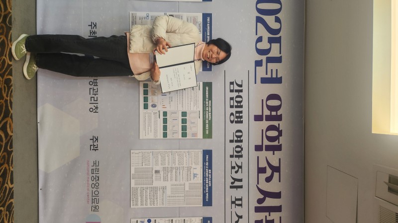 먼저 11월 4일 서울코리아나호텔에서 열린 ‘2025 역학조사관 학술대회’에서 CRE(카바페넴 내성 장내세균목) 감염증 증가의 원인을 다각도로 분석하고, 예방 대책을 제시해 장려상을 받았다.