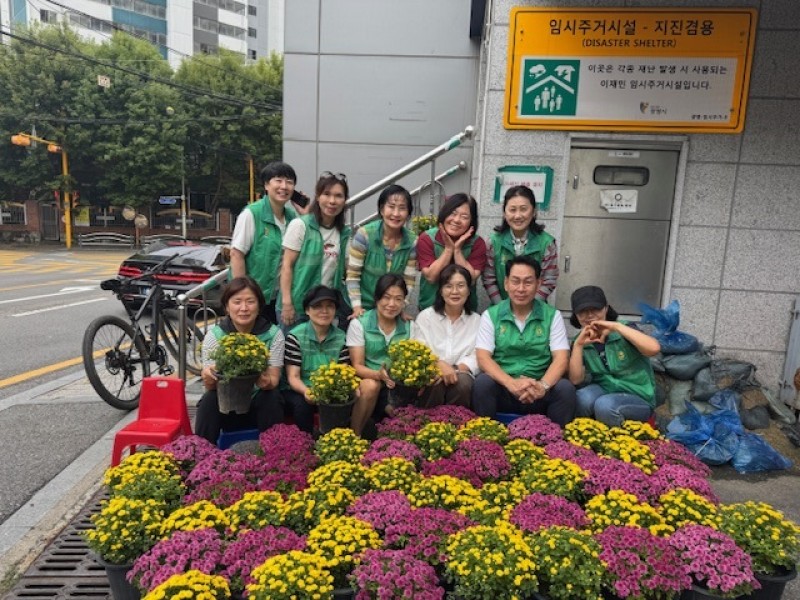 이번 행사에는 새마을지도자협의회·부녀회 회원 17명이 참여해 국화 100여 본을 행정복지센터 화단에 심고 주변 환경정비를 실시했다.