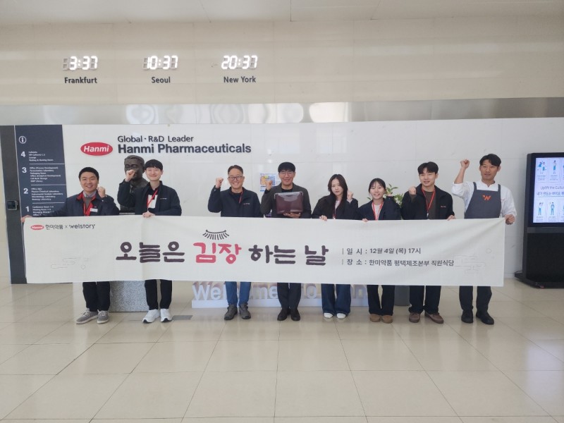 평택시 팽성읍 추팔산업단지에 있는 ‘한미약품 평택제조본부’에서 올 겨울을 앞두고 지역사회 이웃들과 따뜻한 정을 함께 나누기 위하여, 직원들이 직접 담근 김장 김치 10㎏ 60통을 팽성읍에 기부했다.
