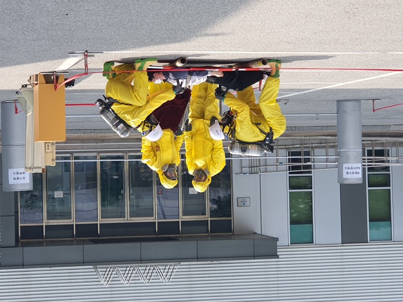 유해화학물질인 메틸 알코올 누출로 인한 화재 상황을 설정해 진행한 이 훈련은 자체 매뉴얼에 따라 비상 상황 긴급전파 소방대 초동 조치 화재 진압 인명구조 사고 복구 등으로 구성됐다.