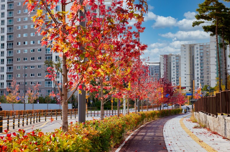 망포동 일원 미국풍나무는 붉은색과 주황색 단풍으로 물들며 가을 특유의 색채를 뽐내고 있다. 광교호수공원로는 중국단풍이 붉게 변해 호수와 함께 가을 분위기를 만들고 있다. 창룡대로·중부대로·효원로는 노란 황금빛 은행나무로 물들었다.