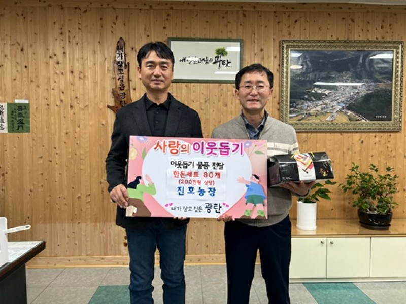이재욱 광탄면장은 “진호농장은 매년 연말마다 지역 이웃들을 위해 따뜻한 손길을 전해주고 있는 든든한 후원자”라며 “지속적인 기부 활동이 주민들에게 큰 힘이 되고 있다”라고 감사를 전했다.