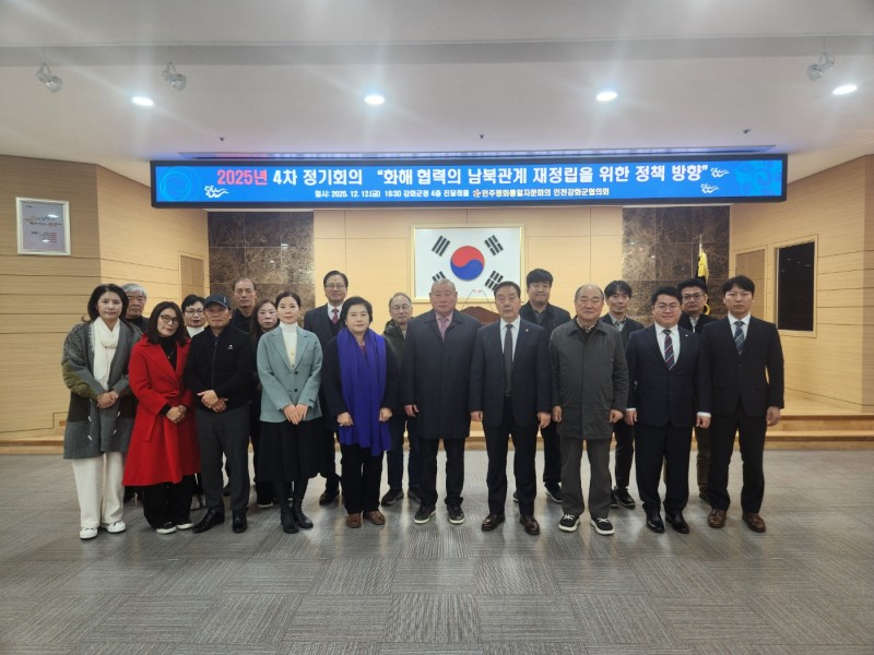 민주평화통일자문회의 강화군협의회(협의회장 이윤섭)는 지난 12일 강화군청에서 자문위원 등 30명이 참석한 가운데 ‘화해.협력의 남북관계 재정립을 위한 정책 방향’을 주제로 2025년 4차 정기회의를 개최했다.